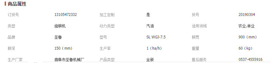 各種規格旋耕機參數
