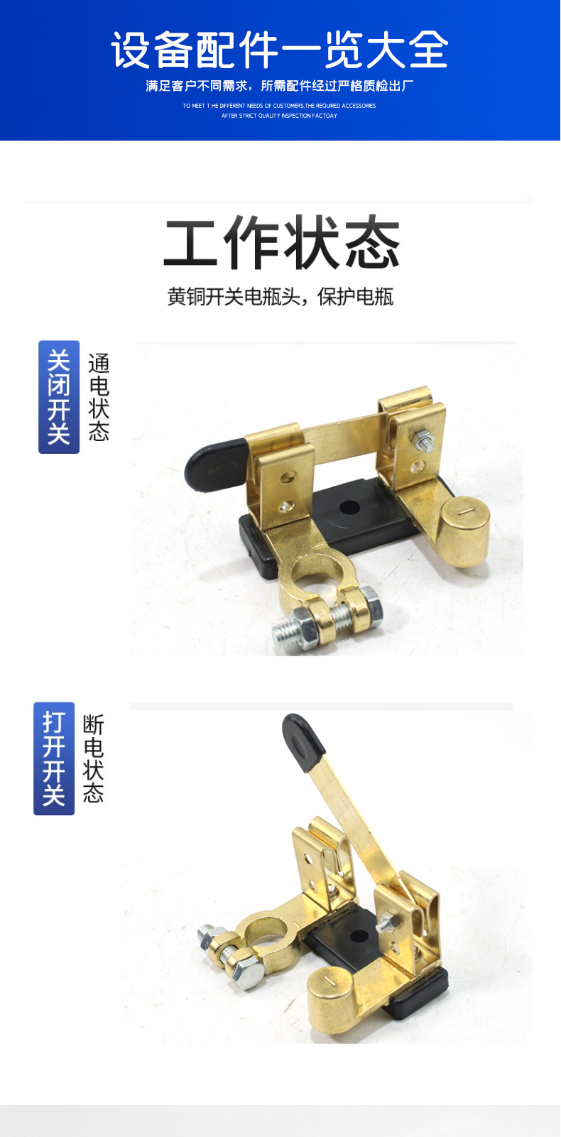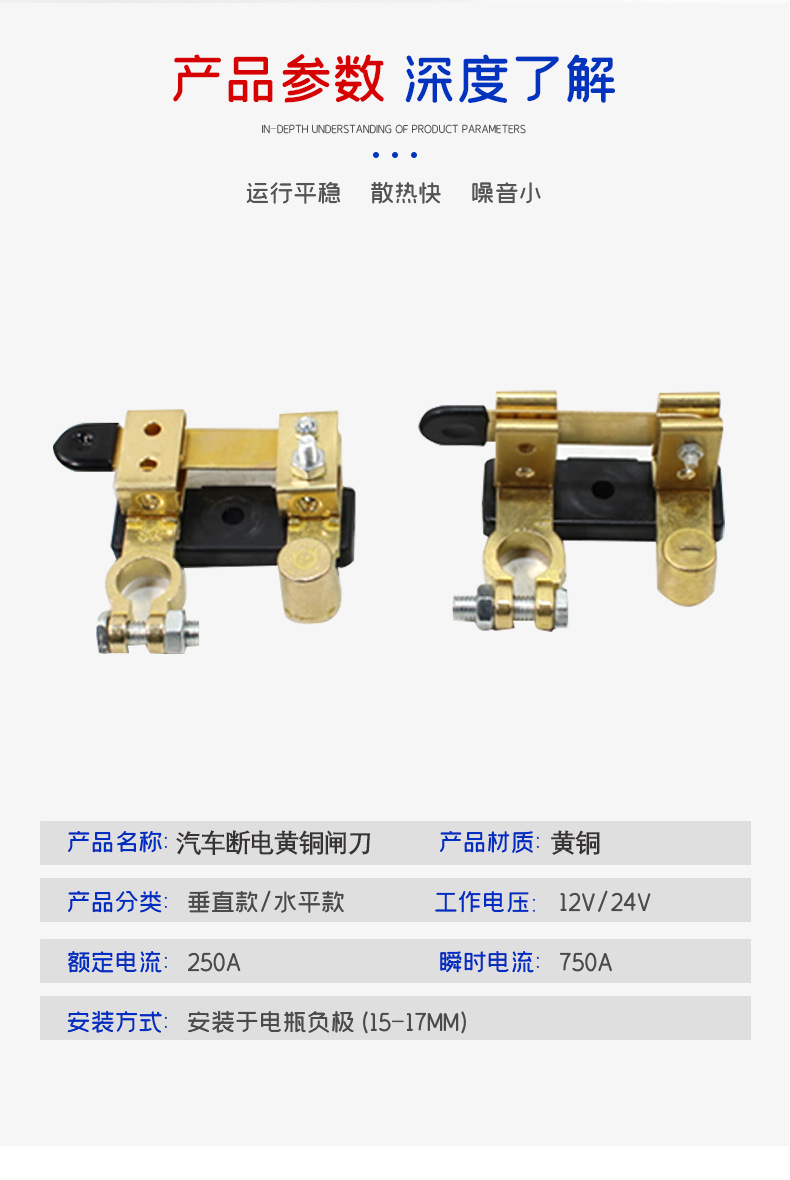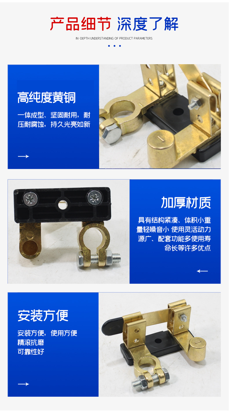 汽車電瓶開關黃銅刀閘防漏電保護斷電手動負極閘刀純銅蓄電池總閘