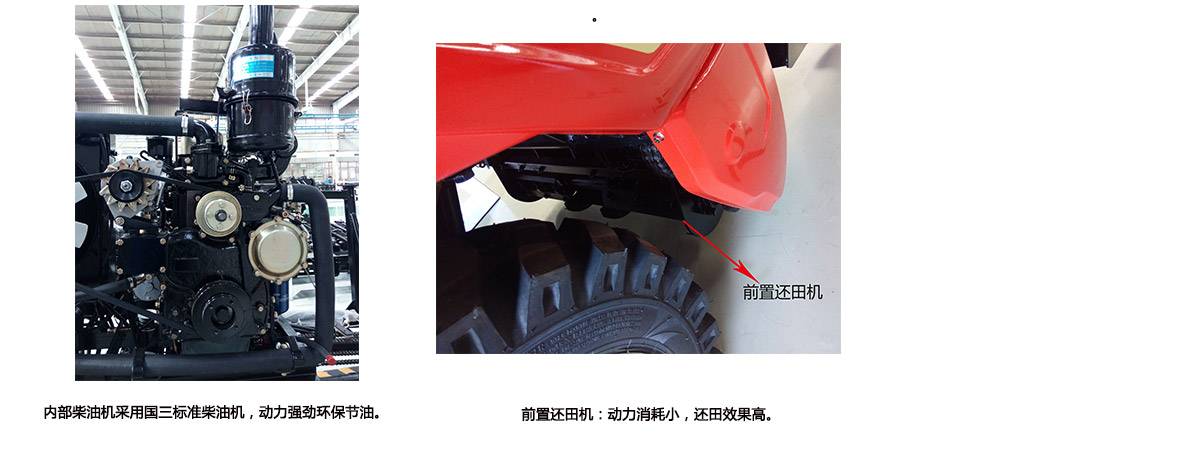 2.四輪驅動,液壓轉向。糧倉后置容量大,且在