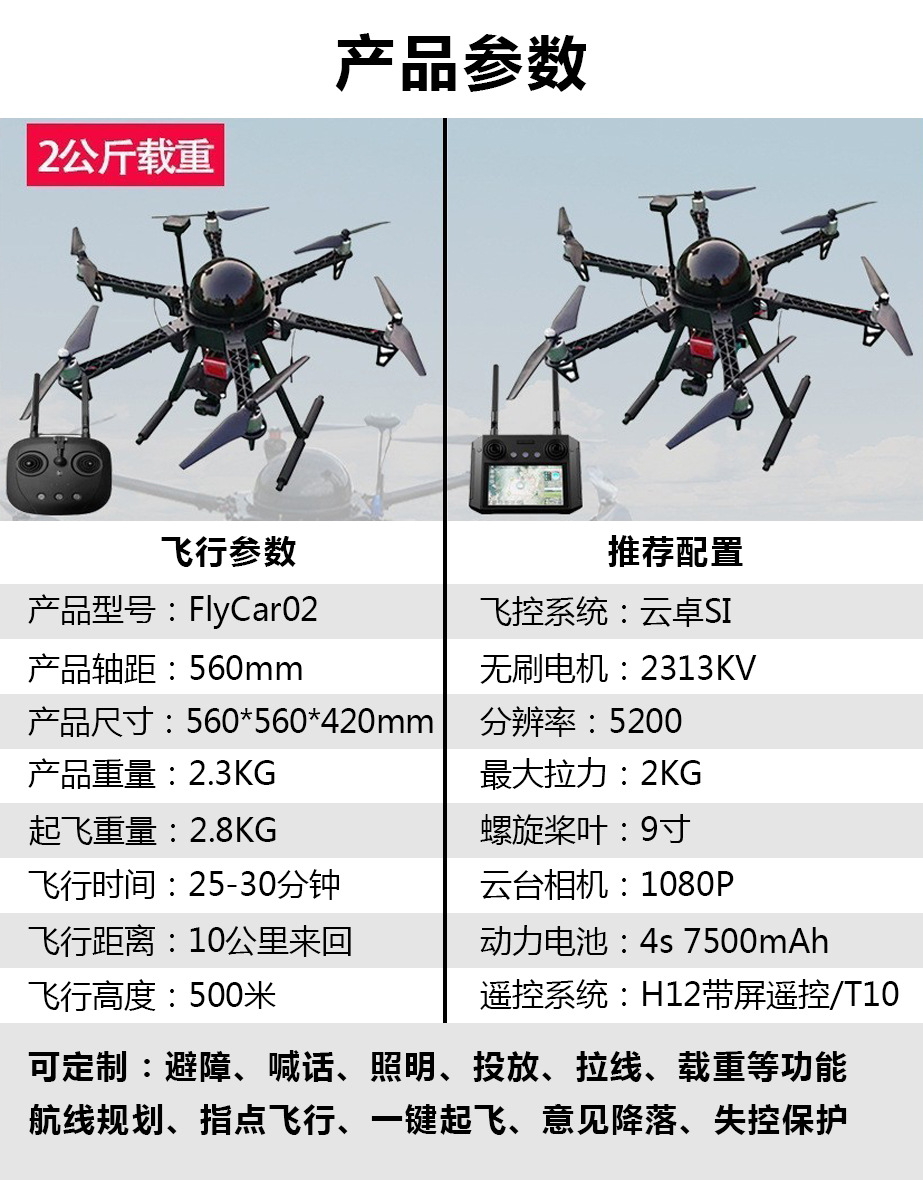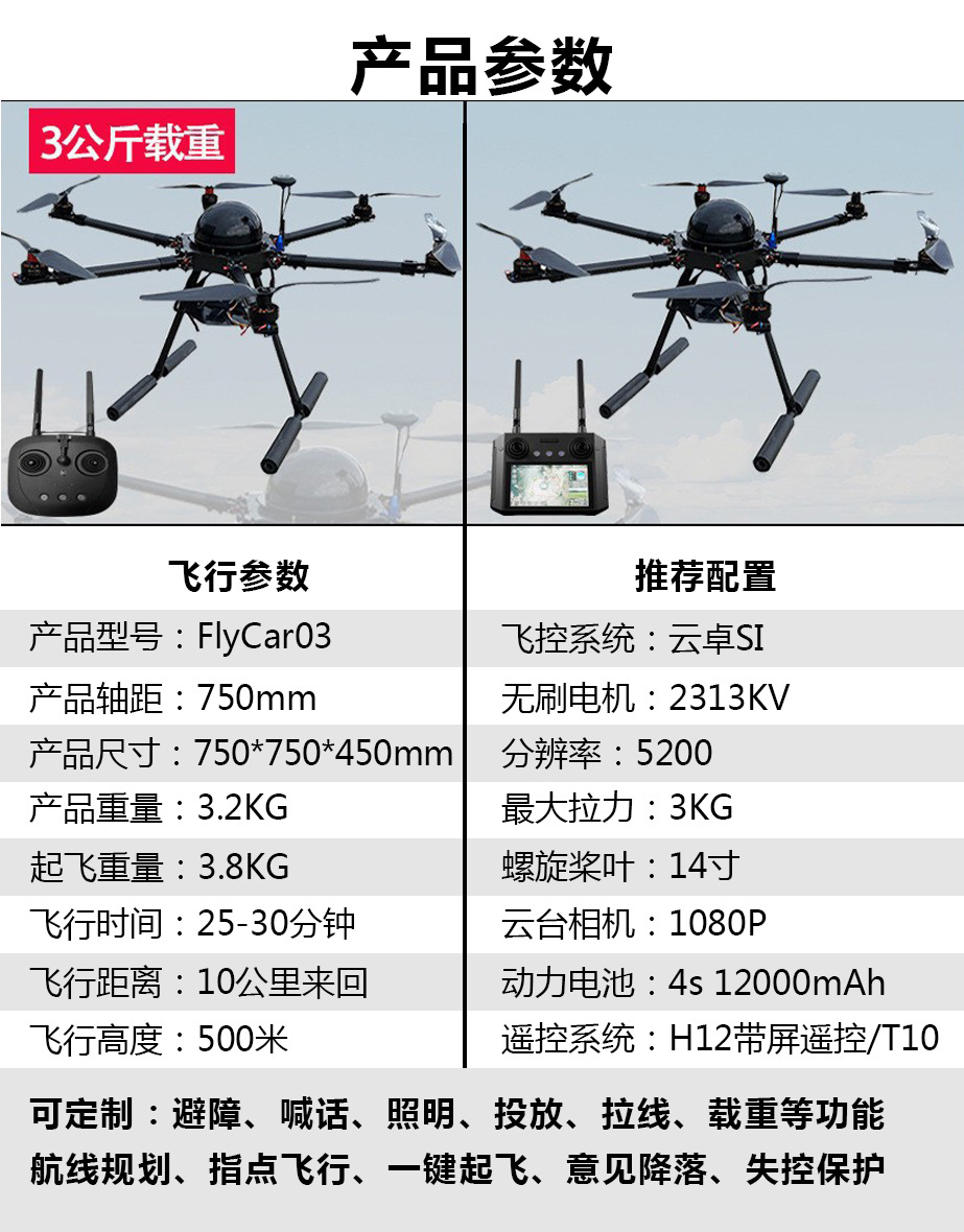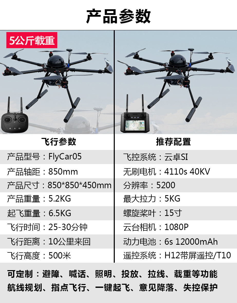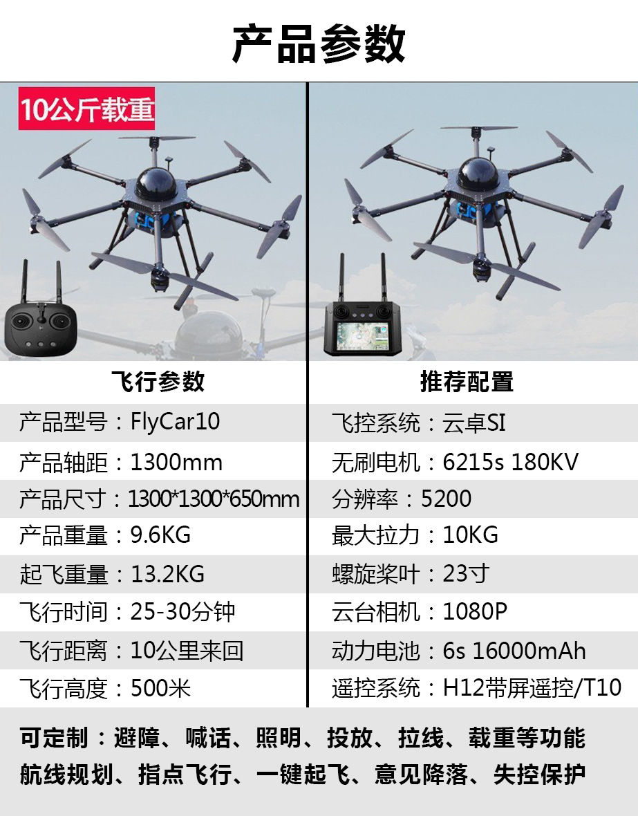 載重運輸無人機長續航智能返航遠程投放智能控制全自動運載無人機