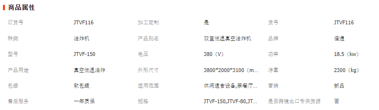 佳通機械雙室低溫真空油炸機規(guī)格: