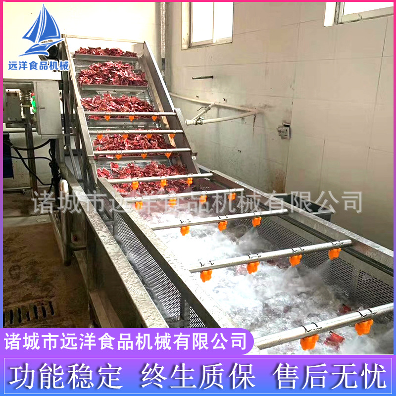 蔬菜氣泡清洗機清洗切后的莖葉、莖桿物料等在高壓、翻滾的氣泡內行走,高壓清水噴淋、冷卻增氧泵通過管路及管孔從噴淋桶底噴出翻滾的泡泡達到消毒清洗的目的。專業蔬菜清洗機可清洗薯、根、球、塊類物料在高壓翻滾氣泡行走、高壓清洗噴淋。莖、葉類雙層板鏈自動行走,氣泡蔬菜清洗機高壓氣泡沖洗。