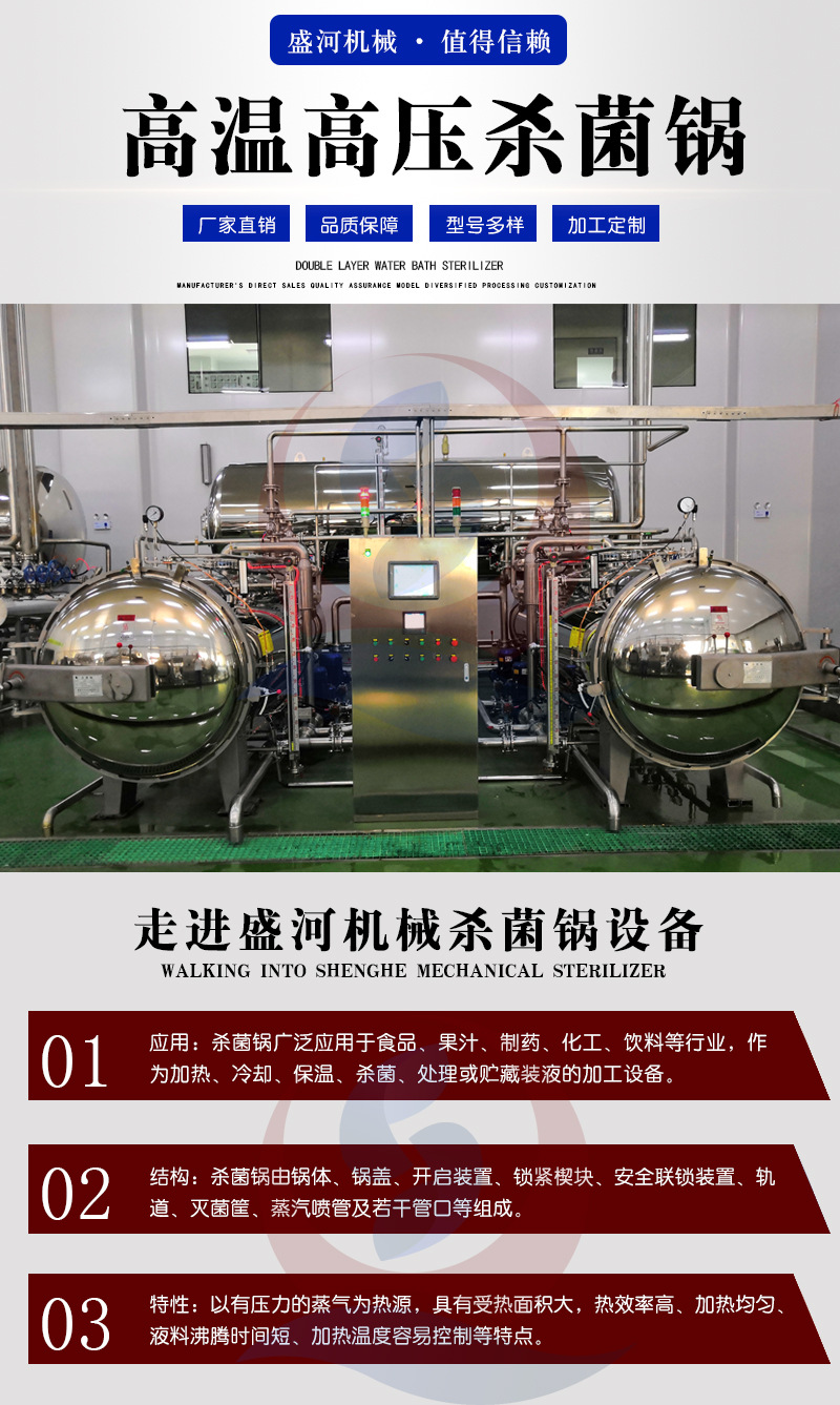 詳細信息 訂貨號SH-1200 加工定制否 貨號SH-1314 品牌盛河機械 型號SH-1200 殺菌設備類型釜式 適用范圍茶餐廳設備,肉制品加工廠設備,調料加工廠設備,冷凍食品廠設備,面包房設備,蛋糕房設備,中餐店設備,休閑食品廠設備,飲品店設備,西餐店設備,果蔬加工廠設備,咖啡店設備,酒廠設備 營銷新品 規格SH-700x1200,SH-900x1800,SH-1000x2400,SH-1200x3600,SH-1500x5250,設備定金 是否跨境出口專供貨源否