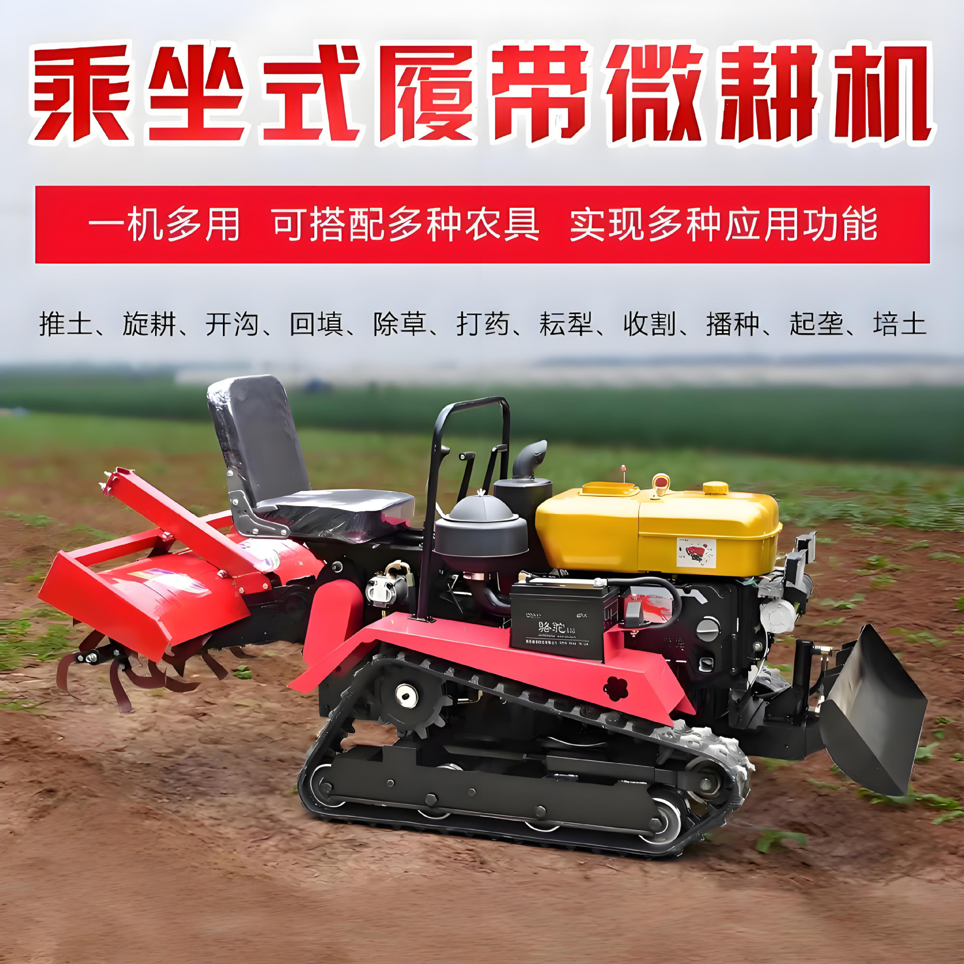 農用履帶旋耕機小型柴油微耕機旱地水田兩用耕田乘坐式果園管理機
