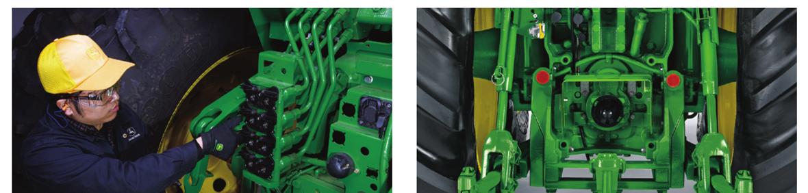● 適用性廣:壓力流量補償液壓系統按需供給,響應靈敏,提高系統可靠性并降低功率消耗。后三點懸掛提升力大,力位控制精準。標配4組SCV輸出閥,電子控制,供油時間和流量精準可調。
