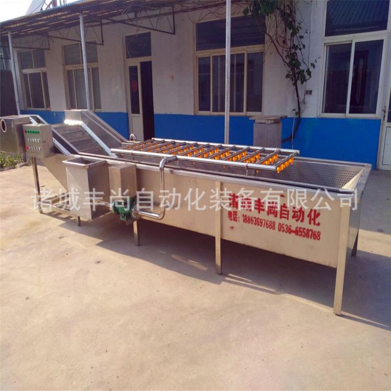 氣泡清洗機是水果,蔬菜,水產生產線中的重要產品,主要用于水果,蔬菜,水產的清洗。氣泡清洗機的原理主要是利用箱體前部分設備箱體中注適量的水,原料在經過箱體時,會與氣泡機和水的結合作用下做翻滾狀態,并隨網帶不斷向前推進,在出水面時,設有噴淋頭,高壓沖洗。 氣泡清洗機是針對外形要求高的物料設計,適用于:蔬菜、水果、水產品、中草藥等顆粒狀、葉狀、根莖類產品清洗、浸泡。