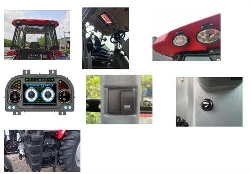 2.新一代滾塑頂駕駛室,隔熱及密封性好、駕駛室噪音低、視野開闊、自帶天窗駕駛更舒適;有選裝防翻架配置,滿足不同客戶需求,經濟實用。裝配LED工作燈,亮度高、壽命長;智能七吋液晶彩屏組合儀表、顯示內容多、可靠性高;具備人機交互功能,方便用戶對整車進行維修;可實現保養提醒;集成后視影像功能,實時觀察后置機具作業情況,更加方便實用。右側四聯翹板開關設計,USB充電器接口,2.1A大電流,滿足手機等移動設備的應急充電;終端滿足農機“三合一”補貼要求,具備“OTA”自動升級功能,補貼無憂。配備點煙器接口,可用作小功率電子設備的充電口;中央控制盒,集中控制,質量可靠,維修簡單。燃油箱190L,油箱容積大,連續作業時間長。