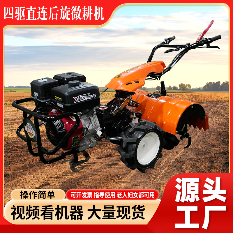 廠家直發(fā)四驅直連后旋微耕機農用除草旋耕機果園農田開溝翻地機器