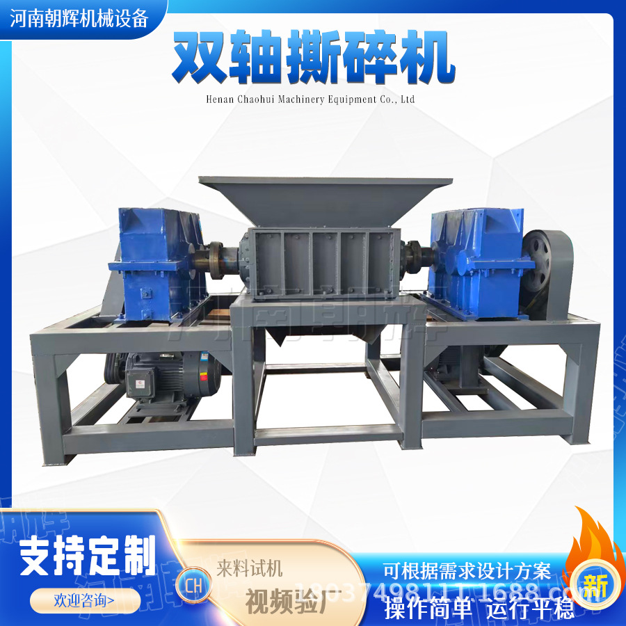 橡膠塑料木材托盤雙軸撕碎機工業破碎塑料藍桶金屬生活垃圾粉碎機