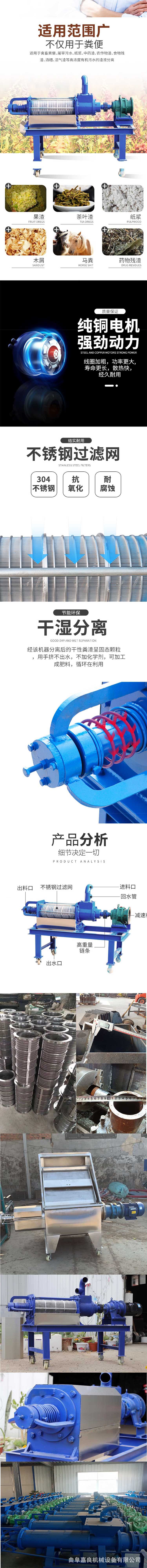 304斜篩式干濕分離機 抽糞固液分離機廠家 嘉良 雞糞牛糞脫水機