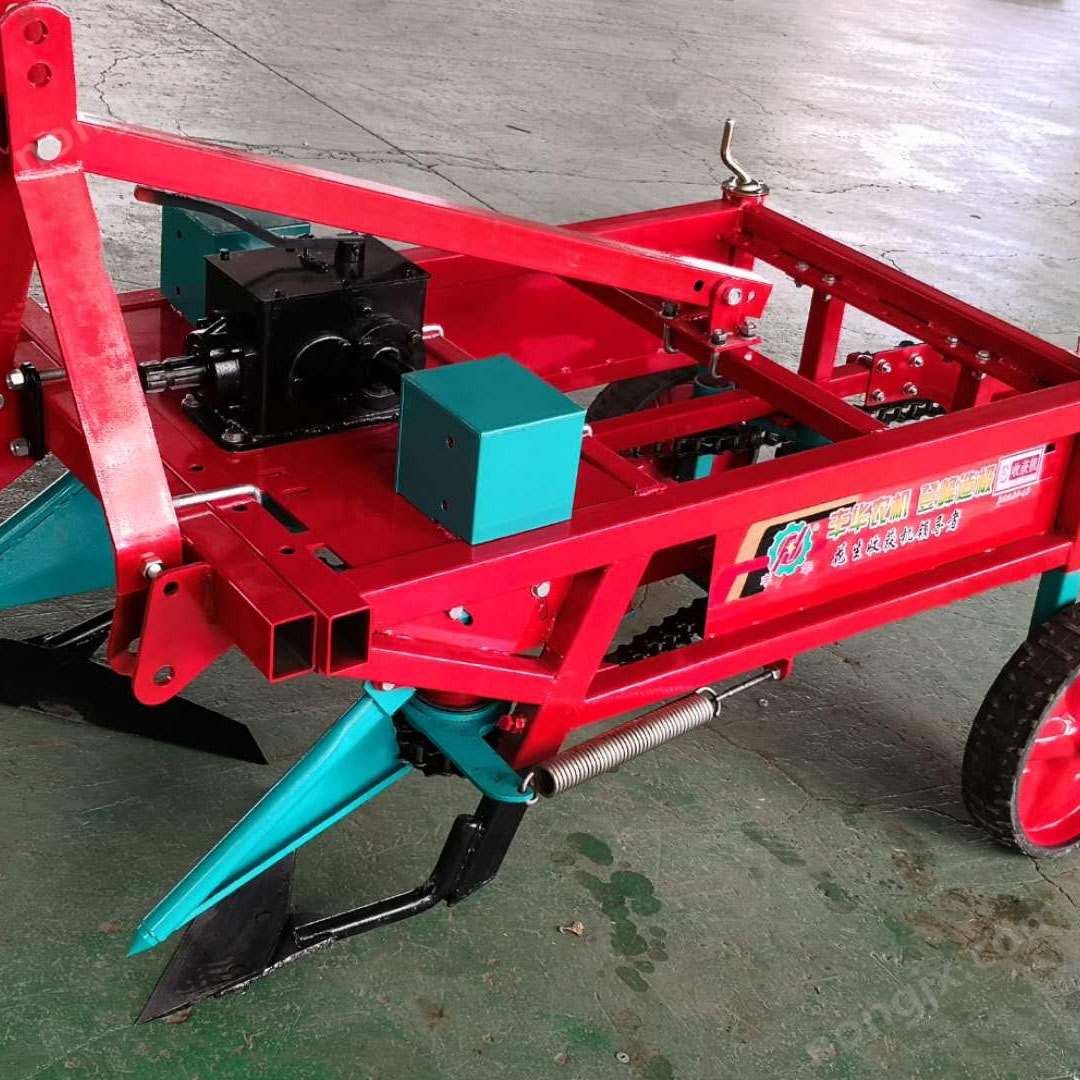 四輪拖拉機配套河南、湖北型花生收獲機:配套動力15馬力以上四輪拖拉機,變速箱配有高低速,適用于各種機型,適應65-75厘米一壟兩行花生種植模式,整體齒輪箱,全部鏈輪采用雙軸承全密封,可移動懸掛臂,防脫鏈條,甩尾設計,避免第二趟收獲壓花生,每小時功效5-7畝!
