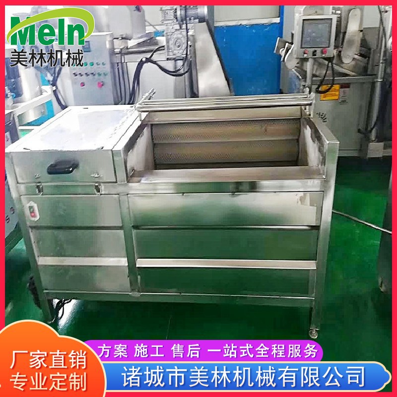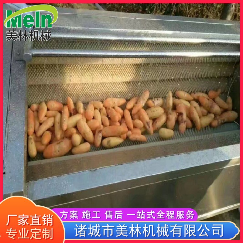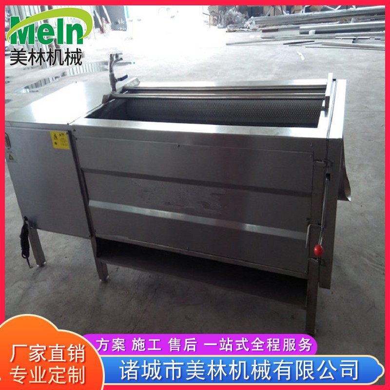 毛輥清洗去皮機是我公司吸取了國內外對根薯類加工機械的特點設計制造的,采用毛刷原理,廣泛適用于胡蘿卜、山芋、馬鈴薯、紅薯等薯類蔬菜的清洗,除皮。該機具有耗能小,體積小,外形美觀和操作方便的特點。箱體采用 不銹鋼材質,不銹蝕,清潔衛生,毛輥不易變形,毛刷采用尼龍線繩軋制而成。 設備使用全不銹鋼制造,帶有自動噴淋裝置,干凈衛生,符合衛生標準。脫皮率高等特點。電器部分配有電機過熱,漏電等保護裝置,按鈕開關,操作方便。是食品、果品加工、蔬菜深加工、海產品加工、酒店、食堂等的專業設備。