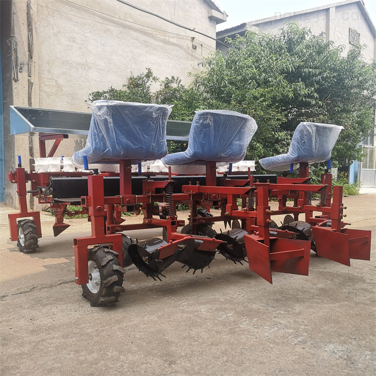三行藥材移栽機采用高精度的喂入器組件,高質量、高效率地將秧苗運送到移栽機上,移栽苗苗直立良好,無滲漏。株數、行距、移栽深度可調。土地適應性較強。用料、用工、制作精良。耐用,易于維護。易于操作。用戶操作方便,適用范圍較廣。減少用戶不必要的資金支出,減少人工勞動,減少人工成本,解決人工勞動效率低的問題,提高農業設備的機械自動化程度,更加人性化,符合現代農學的要求。