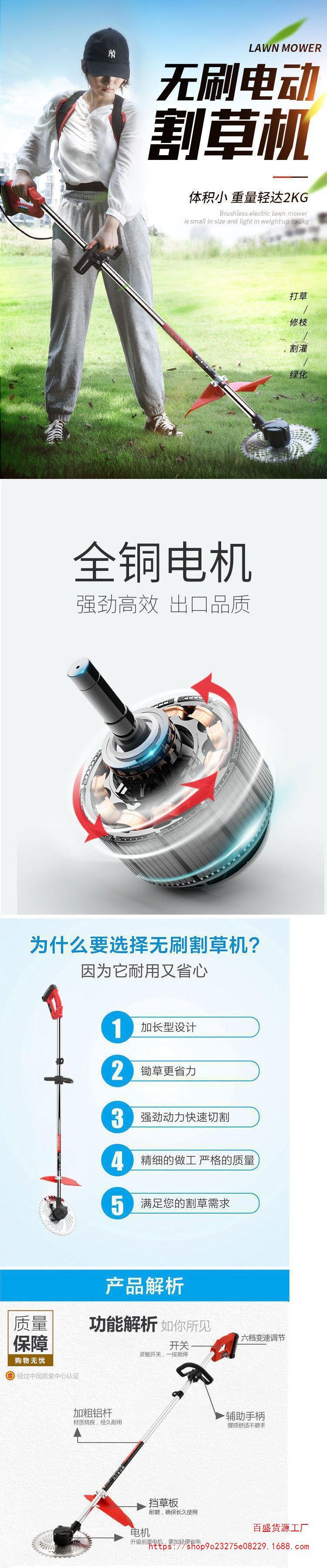 邁越充電式無刷電動(dòng)割草機(jī)小型背負(fù)式除草機(jī)打草機(jī)家用草坪剪批發(fā)