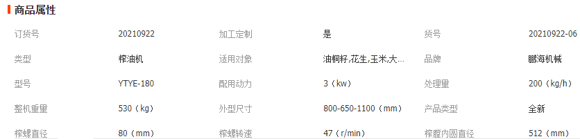 液壓榨油機(jī)是機(jī)械榨油中操作簡(jiǎn)單,出油率高,更換易損件少的一種小型榨油機(jī),是目前替代小磨香油手工操作的先進(jìn)設(shè)備,每次榨取量少、時(shí)間短,可以讓市民花錢(qián)購(gòu)真貨,保證來(lái)料快速加工(自己的材料生產(chǎn)自己的油)所榨出的油質(zhì)淳香純正,有用戶油坊的必備產(chǎn)品。