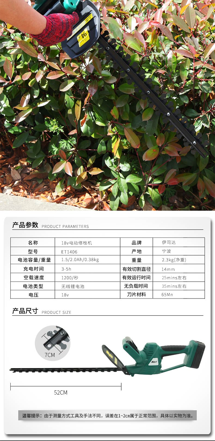 伊司達電動綠籬機充電式修剪機家用修枝機粗枝剪綠籬剪