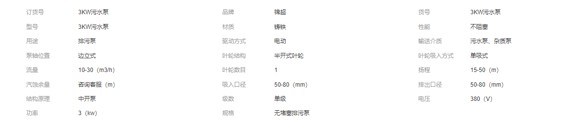 錦超可定制農(nóng)用潛水泥漿泵無堵塞污水泵 3KW高揚程排污泵廠家直供