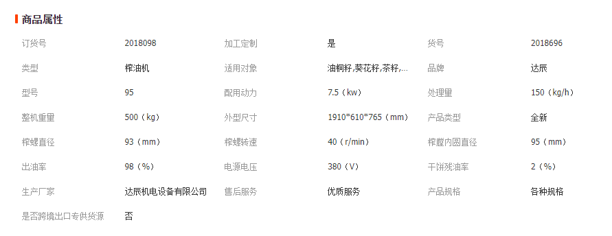 95型螺旋榨油機是新改進的榨油機產品,是目前油料加工機械中較為新型的機器.它具有結構簡單,使用方便,適用性墻,出油率高,節電,噪音低等特點,對各種油料如花生、大豆、菜籽、棉籽、橄欖、向日葵、椰子、可可豆、草籽等植物油料均可進行壓榨.適用于中、小型油料加工廠及個體專業戶使用.也可用于浸出油廠的預榨.