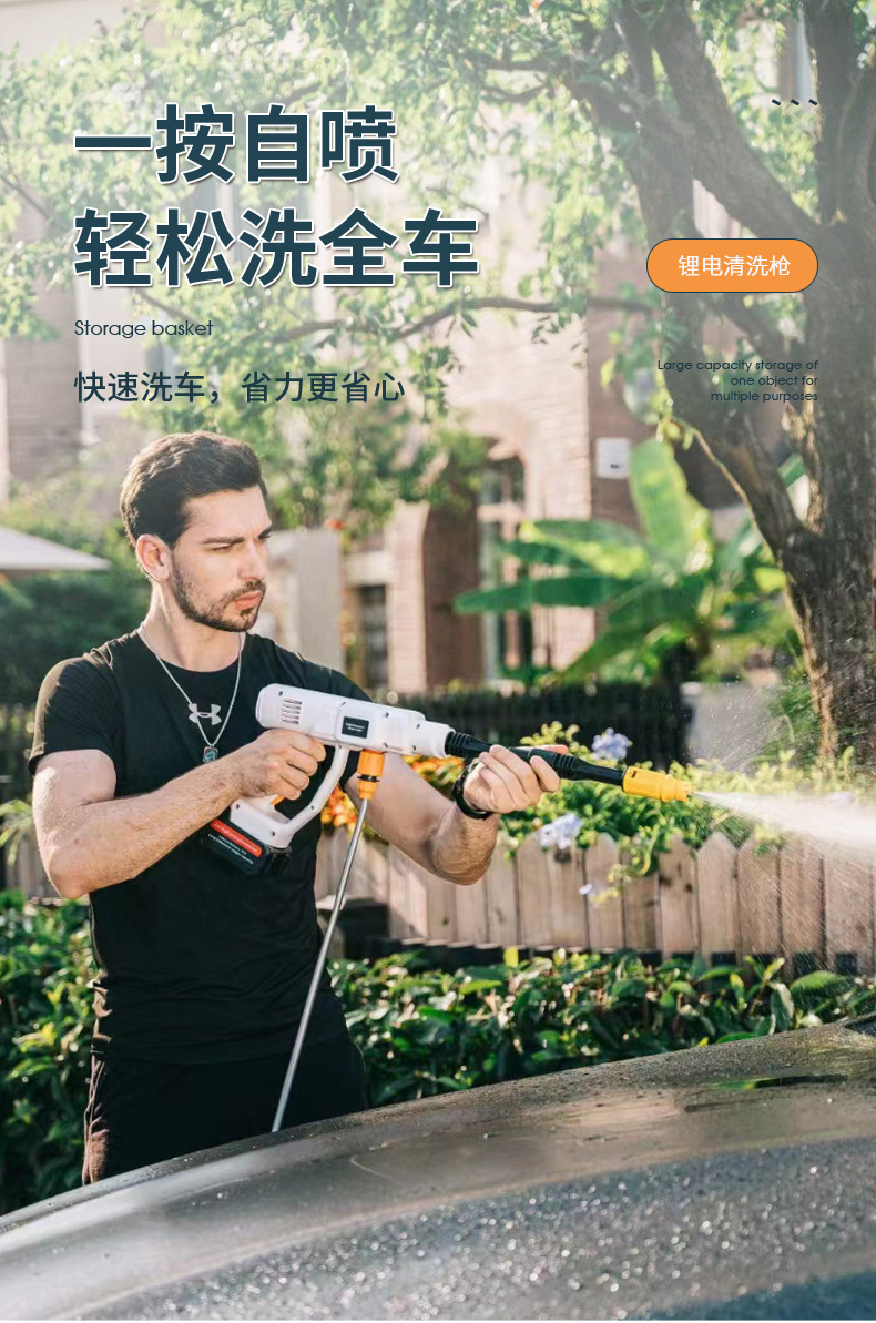廠家直供高壓洗車槍 便攜式無線洗車機 鋰電池洗車水槍家用洗車器
