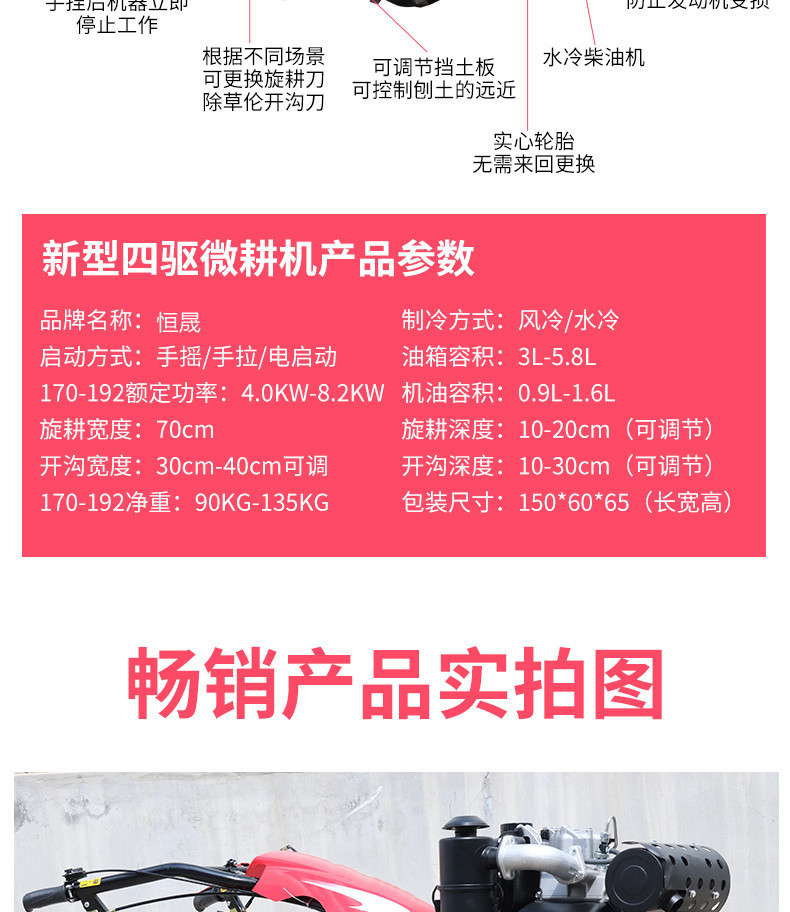 四驅(qū)微耕機小型直連柴油耕地開溝農(nóng)用耕田起壟犁地神器新式旋耕機