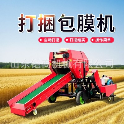 青儲打包機農場秸稈粉碎草料打捆包膜機全自動青貯打捆包膜一體機