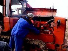 老式拖拉機進行翻地作業