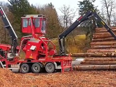 不可思議的移動式剝皮機(jī),帶樹皮的木頭推進(jìn)去,光溜溜的送出來